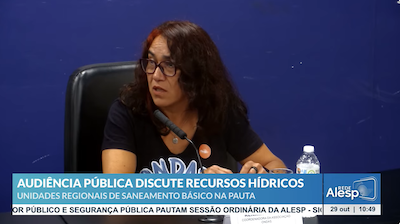 A coordenadora geral do ONDAS, Renata de Faria Rocha, participou de audiência pública na Assembleia Legislativa de São Paulo sobre o PL 1083/2025, que altera a regionalização de saneamento, denunciando que foco da iniciativa é facilitar a privatização de serviçso municipais de água e esgoto dos municípios paulistas não atendidos pela Sabesp já privatizada pelo governo Tarcísio.