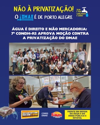 7ª CONDH-RS APROVA MOÇÃO CONTRA PRIVATIZAÇÃO DO DMAE