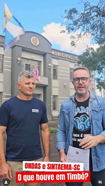 O ONDAS também esteve presente em Timbó protocolando requerimento de informações e de providências relacionadas com a atípica revogação da licitação dos serviços de água e esgoto, feita pelo próprio prefeito, que tinha como concorrentes a empresa estadual Casan e Aegea privada.