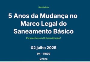 4⃣ Seminário: 5 anos da mudança no Marco Legal do Saneamento Básico. Perspectivas da universalização?