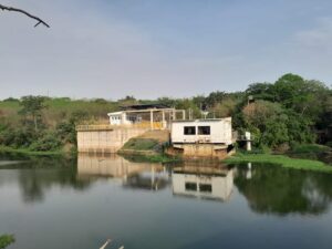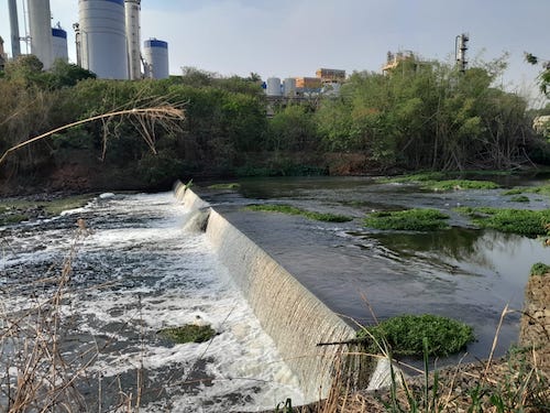 Barragem no rio Piracicaba, a altura da indústria de papel Suzano, construida para elevar o nivel do rio